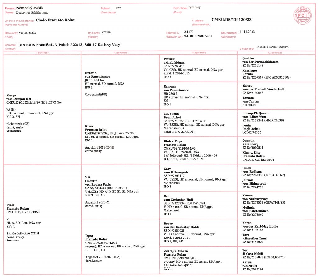 ED - 0/0 normal, HD - 0/0 normal, DNA geprüft, ZW 81